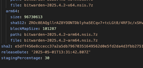 • Download the update manifest. This will be the file named latest.yml/latest-mac.yml/latest-linux.yml, depending on your platform.